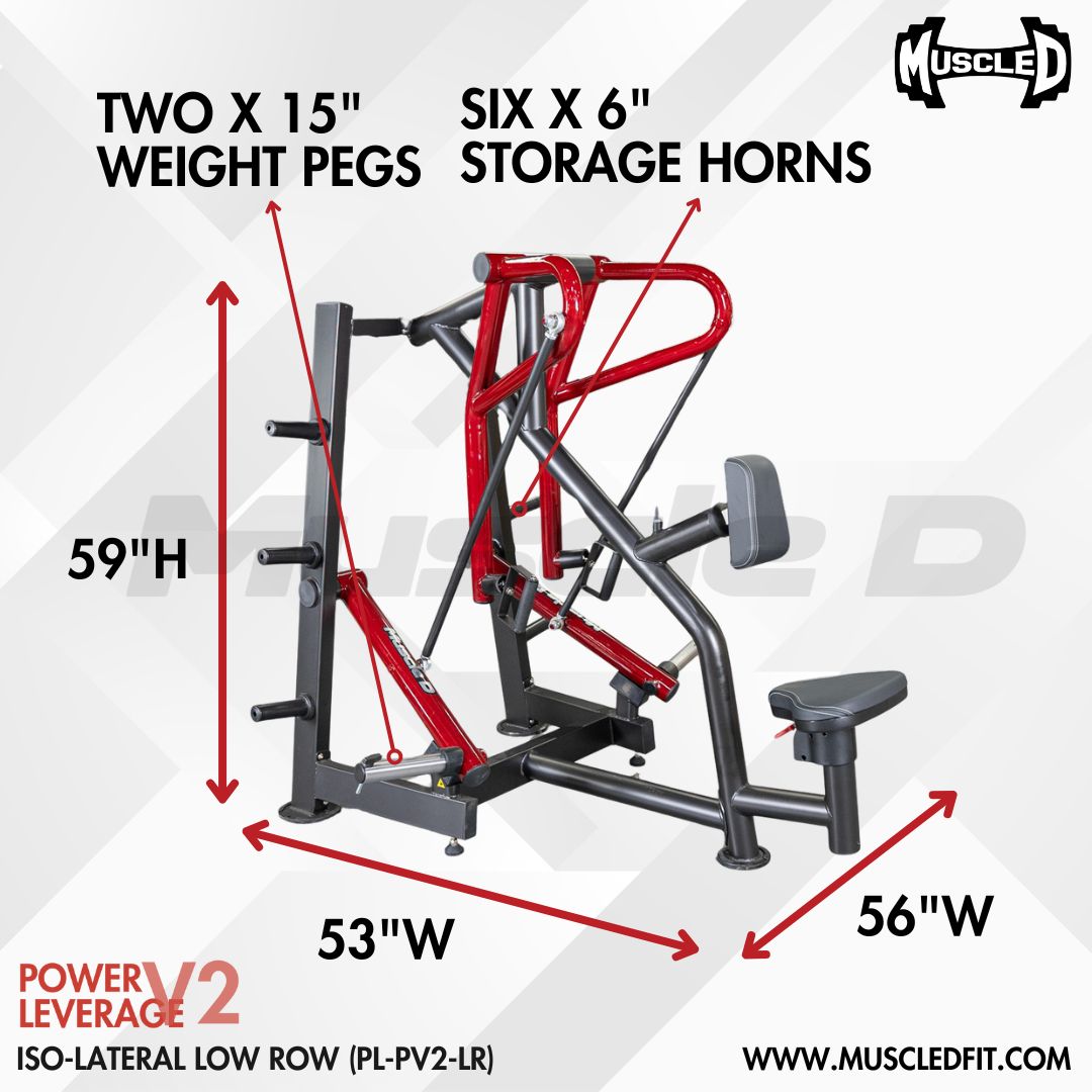 Enhance your strength training routine with the Power Leverage V2 Iso-Lateral Low Row by Muscle D Fitness. This robust and high-performance machine is engineered to deliver exceptional results, helping you build a stronger, more defined back.